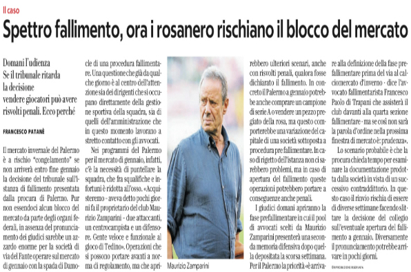 "Il Palermo è sicuro di potere dimostrare che nessuno può vantare crediti nei confronti della società e che tutte le...