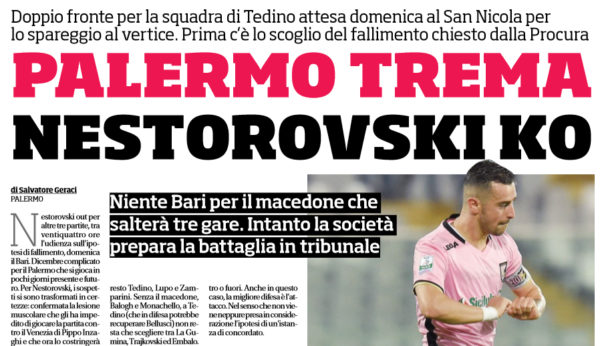 L'edizione odierna de "Il Giornale di Sicilia" ha analizzato l'infortunio di Ilija Nestorovski. Ecco quanto si legge: «Ad ogni male...