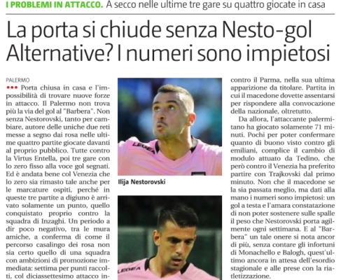 L'edizione odierna de "Il Giornale di Sicilia" ha analizzato la situazione degli attaccanti rosanero. Ecco quanto si legge: “Porta chiusa...