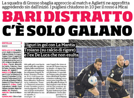 "Una Virtus Entella con la bava alla bocca stritola il Bari: 3-1 meritato per i liguri e biancorossi al tappeto....