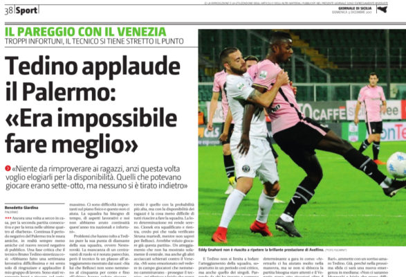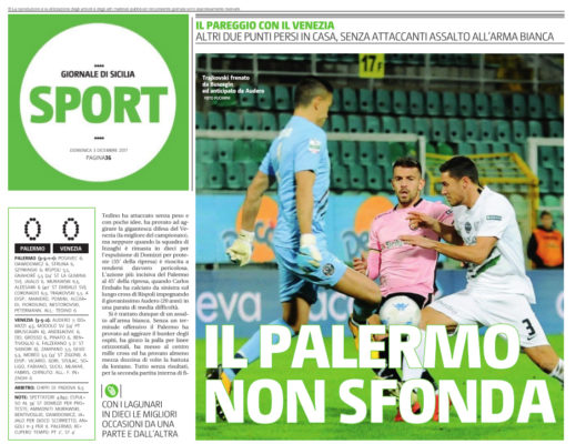 "Senza gol, senza spettacolo, senza tifosi. Brutta partita e un pareggio che soddisfa il Venezia, perché il Palermo si aspettava...