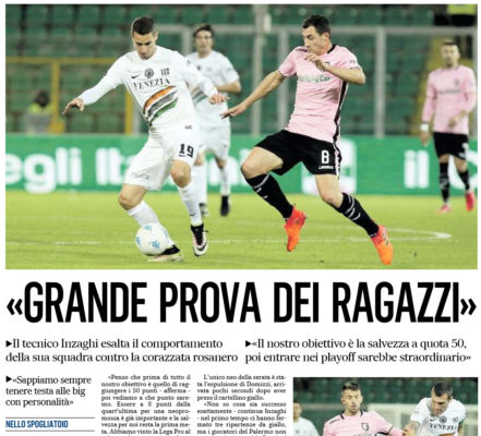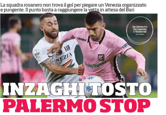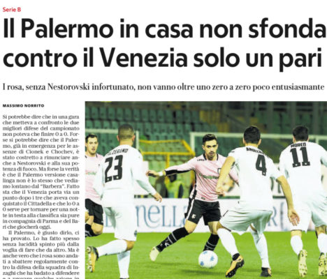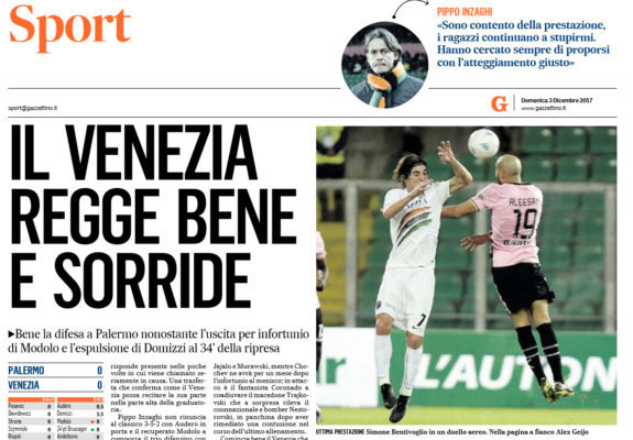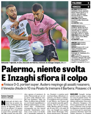 L'edizione odierna de "Il Gazzettino" ricostruisce la gara di ieri tra Palermo e Venezia terminata con il risultato di 0-0....