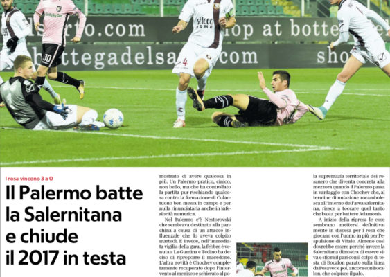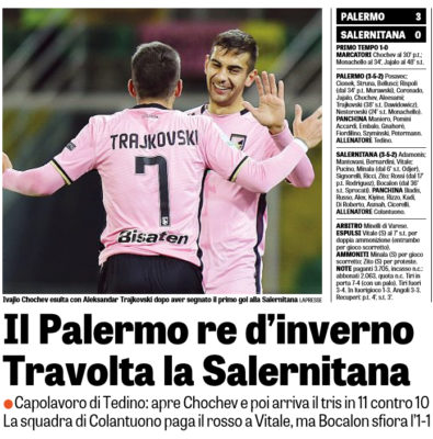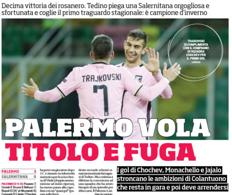 Gazzetta dello Sport: “Il Palermo re d’inverno. Travolta la Salernitana”