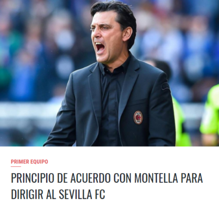 Il sito ufficiale del Siviglia, attraverso il seguente comunicato, annuncia dell'arrivo ormai prossimo dell'allenatore Vincenzo Montella: "Il Sevilla FC e...