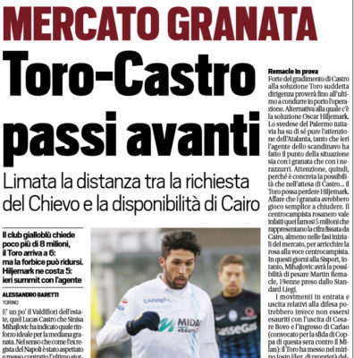 "E’ un po’ il Valdifiori dell’estate, quel Lucas Castro che Sinisa Mihajlovic ha indicato quale rinforzo ideale per la mediana...