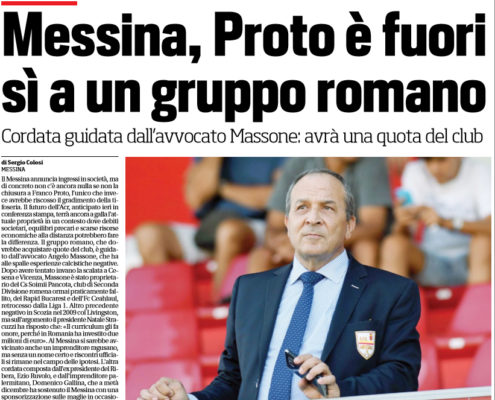 "Il Messina annuncia ingressi in società, ma di concreto non c'è ancora nulla se non la chiusura a Franco Proto,...