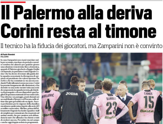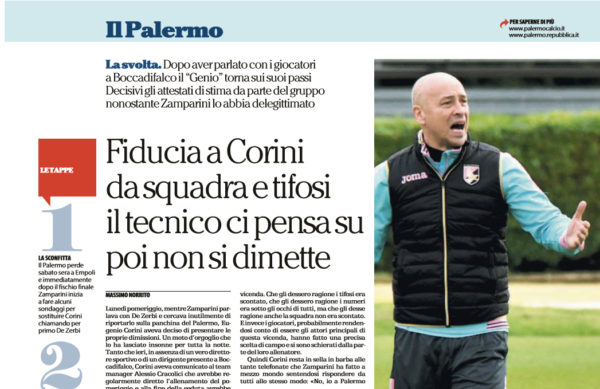"Il cuore e il buon senso di Corini, se Zamparini lo lascerà al suo posto, dovrebbero essere un'altra garanzia che...