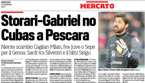 "La settimana di mercato si è aperta con il nodo portieri intricatissimo. Ieri sera la cena meneghina tra il Cagliari...