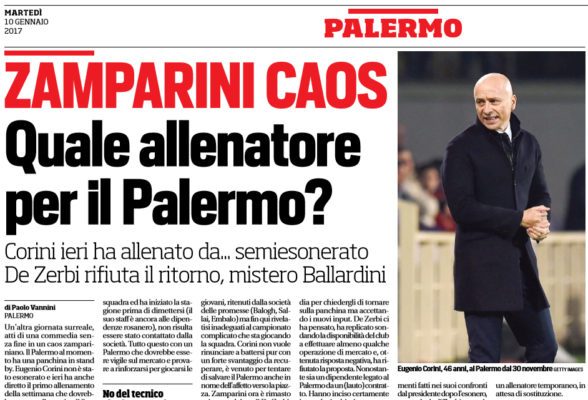 "Un'altra giornata surreale, atti di una commedia senza fine in un caos zampariniano. Il Palermo al momento ha una panchina...