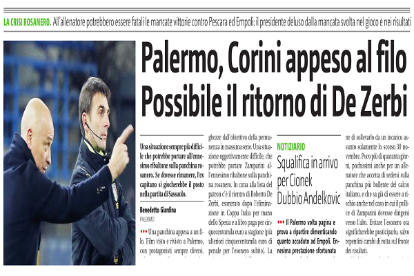 "Corini rischia, è così per diversi motivi. Intanto perché a Zamparini non sono piaciuti i due risultati contro Pescara (prima...