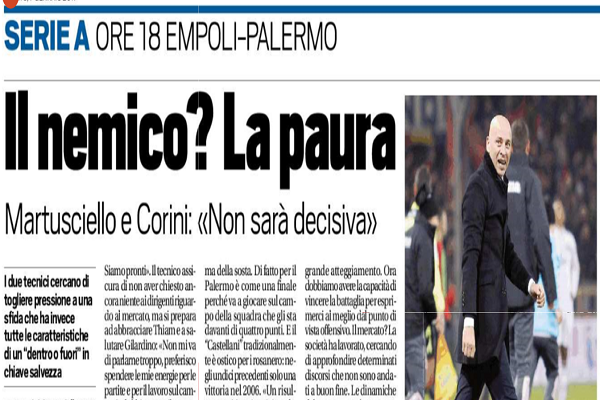 "Palermo, ad Empoli ti serve il cuore" questo è quanto titola l'edizione odierna de "Il Giornale di Sicilia" in merito...