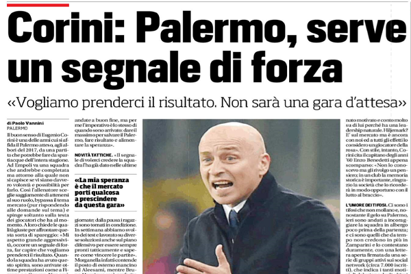“Il buon senso di Eugenio Corini una delle armi cui si affida il Palermo atteso agli albori del 2017, da...