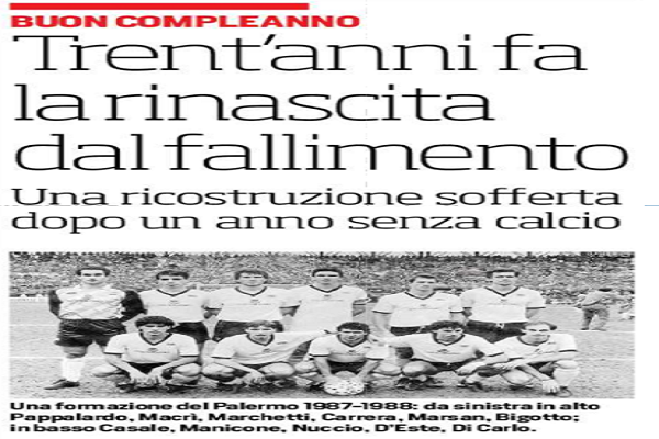 Corriere dello Sport: “Buon compleanno, Palermo! Trent’anni fa la rinascita dal fallimento”