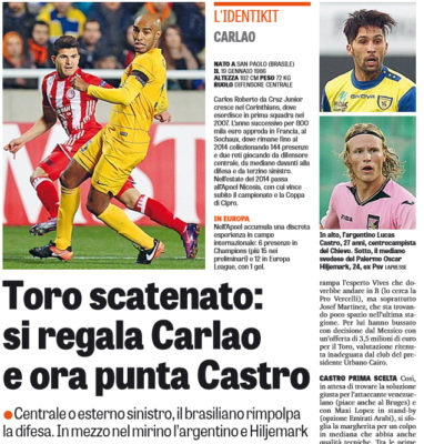 "Il Toro si rifà il look in difesa e a sorpresa porta a casa il brasiliano Carlao Roberto da Cruz...