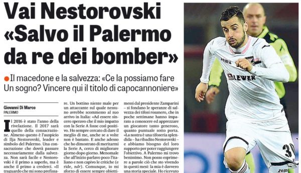 Gazzetta dello Sport: “Vai Nestorovski: «Salvo il Palermo da re dei bomber»”