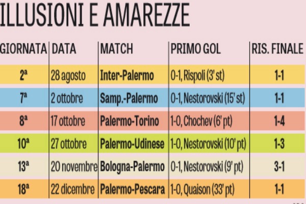 "Tra le 20 squadre di A, il Palermo è quella che ha perso più punti partendo da situazioni di vantaggio:...