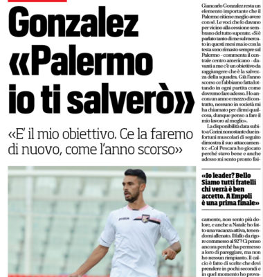 "Gonzalez si tira fuori dal mercato e giura fedeltà e impegno massimale per Palermo. Corini cerca uno che guidi con...
