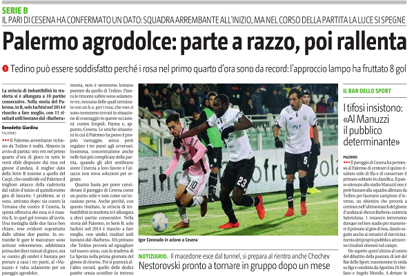 "A quasi metà strada il Palermo, come dice chiaramente la classifica, è la squadra favorita per la promozione in serie...