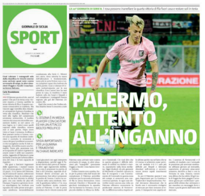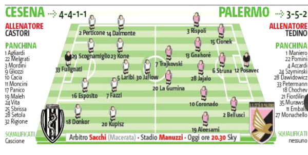 Nella foto in alto le probabili formazioni di Cesena-Palermo proposte dall'edizione odierna del "Giornale di Sicilia". Il match di serie...