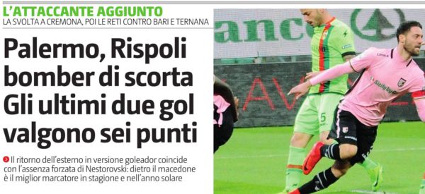 Giornale di Sicilia: “Palermo, Rispoli bomber di scorta. Gli ultimi due gol valgono sei punti”