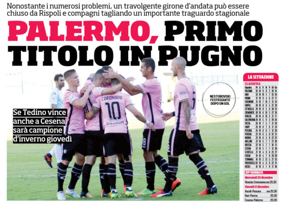 "Vincendo a Cesena, il Palermo si assicurerebbe il titolo di campione d'inverno. Primato virtuale ma dal fortissimo valore psicologico e...