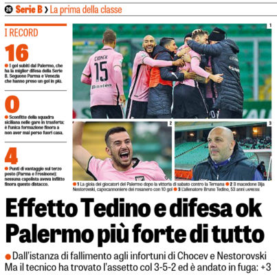 "Vince, contro tutto e contro tutti. Il Palermo che ha consolidato il primato,in barba alla maledizione che aleggiava sul primo...