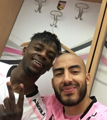 L'attaccante rosanero La Gumina si complimenta con l'autore del gol vittoria del match contro la Ternana Andrea Rispoli. Ecco la...