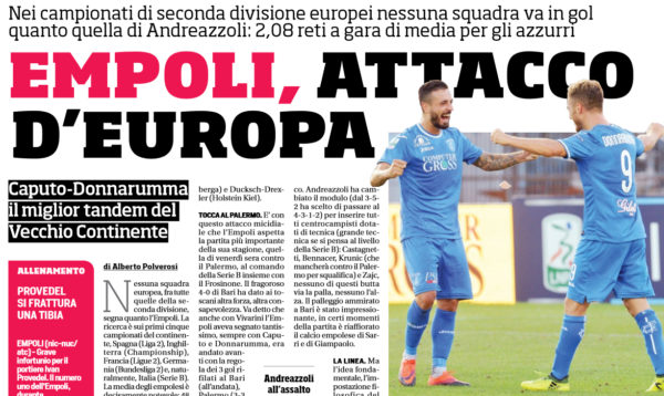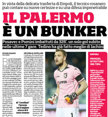 Gazzetta dello Sport: “A tutto Bellusci: «Il Palermo vanta la difesa più forte. L’attacco migliore però è dell’Empoli»”