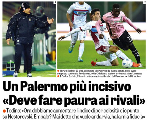 L'edizione odierna de "La Gazzetta dello Sport" ha stilato le probabili formazioni del match di oggi tra Palermo e Brescia....