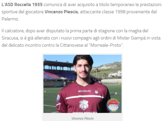 L'ASD Roccella comunica tramite il proprio sito ufficiale di aver prelevato l'attaccante Vincenzo Plescia in prestito dal Palermo e che...