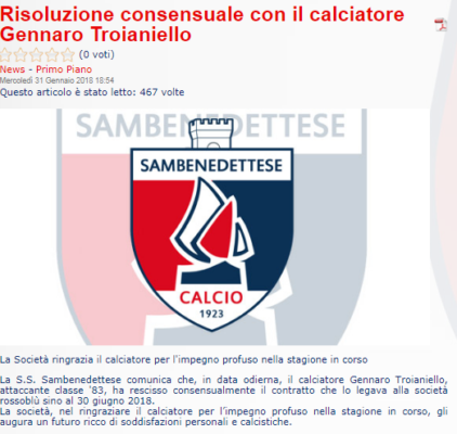 "La Società ringrazia il calciatore per l'impegno profuso nella stagione in corso. La S.S. Sambenedettese comunica che, in data odierna, il...