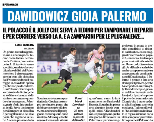 L'edizione odierna di Tuttosport scrive in merito a Pawel Dawidowicz colui che si prospetta essere l'ennesima plusvalenza di Maurizio Zamparini....