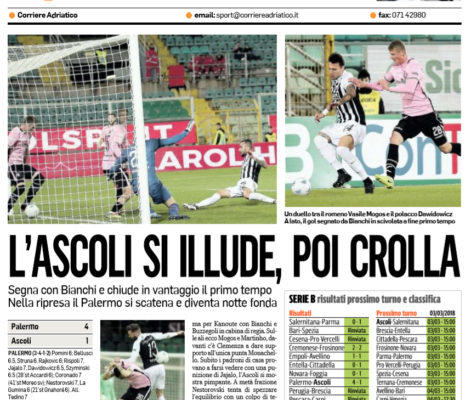 Corriere Adriatico: “L’Ascoli si illude, poi crolla”