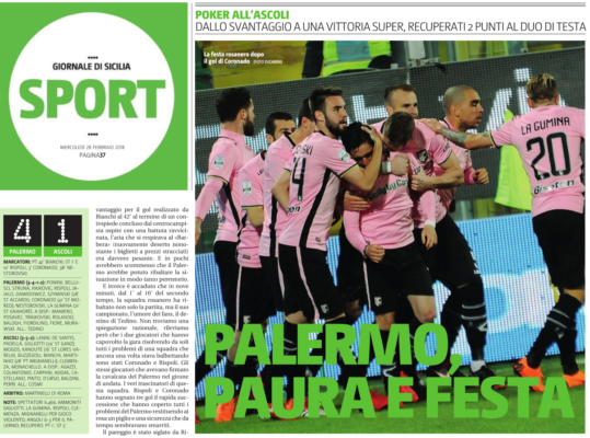 L'edizione odierna de "Il Giornale di Sicilia" ha analizzato la vittoria rimediata ieri dal Palermo contro l'Ascoli. Ecco quanto si...