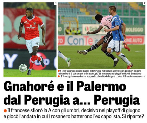 L'edizione odierna del "Corriere dello Sport", in vista del match di sabato alle 15 Perugia-Palermo, scrive del centrocampista rosanero Eddy...