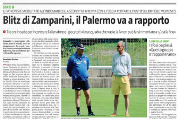 L'edizione odierna de "Il Giornale di Sicilia" ha raccontato l'incontro avvenuto tra Zamparini e la squadra ieri al "Barbera". Ecco...
