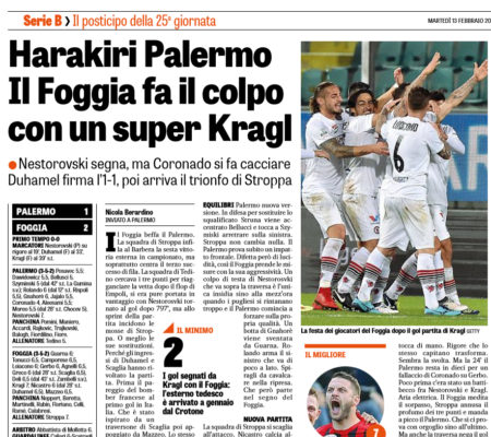 Questo il commento pubblicato sull'edizione odierna de "La Gazzetta dello Sport", in merito al match di ieri sera Palermo-Foggia terminato...