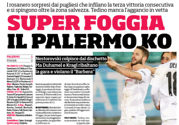 L'edizione odierna del "Corriere dello Sport" rivive quanto successo ieri sera al "Barbera" nel match tra Palermo e Foggia, terminato...