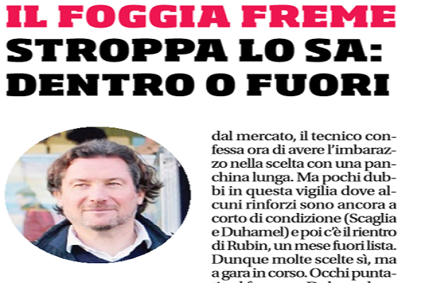 L'edizione odierna de "Il Corriere dello Sport" ha analizzato le parole del tecnico del Foggia, Stroppa, in vista del match...