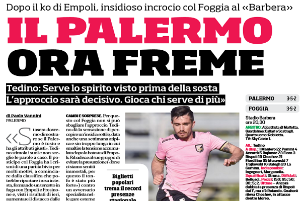L'edizione odierna de "Il Giornale di Sicilia" ha analizzato quella che sarà la sfida di oggi tra Palermo e Foggia....