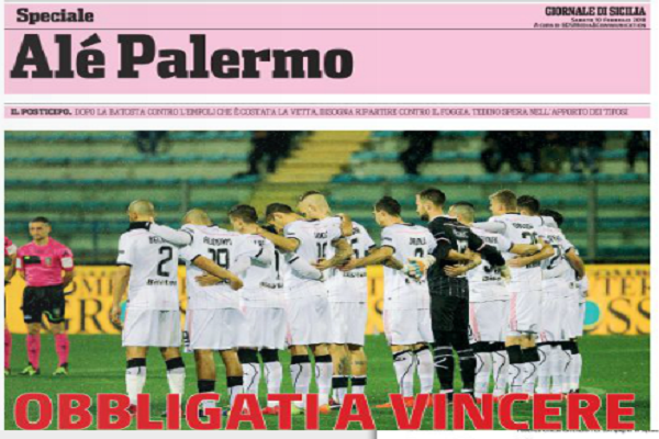 "Obbligati a vincere" titola l'edizione odierna de "Il Giornale di Sicilia", il quotidiano spiega anche il perché: "Obbligati a vincere....