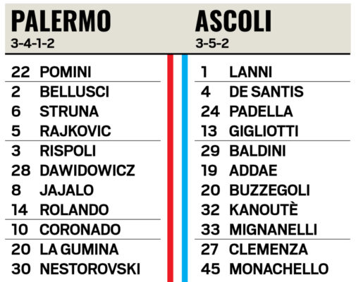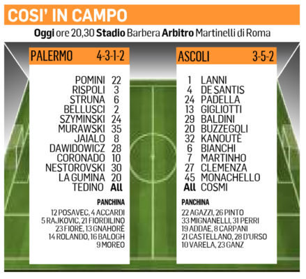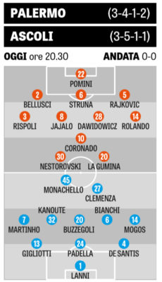 L'edizione odierna de "Il Corriere Adriatico" ha stilato le probabili formazioni di Palermo-Ascoli, gara in programma questa sera al "Renzo...
