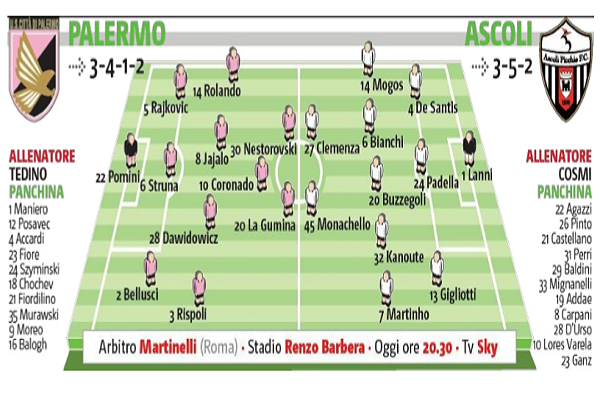L'edizione odierna de "Il Giornale di Sicilia" ha stilato le probabili formazioni di Palermo-Ascoli in programma stasera al Renzo Barbera....