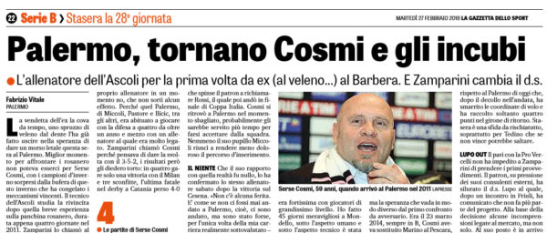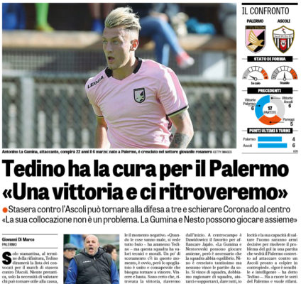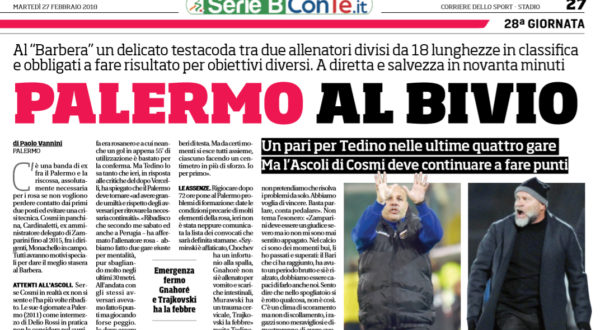 L'edizione odierna de "Il Corriere dello Sport" ha stilato le probabili formazioni di Palermo-Ascoli. In alto le potenziali scelte. Ecco...