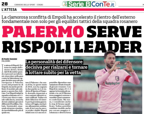 Corriere dello Sport: “Palermo, serve Rispoli leader”