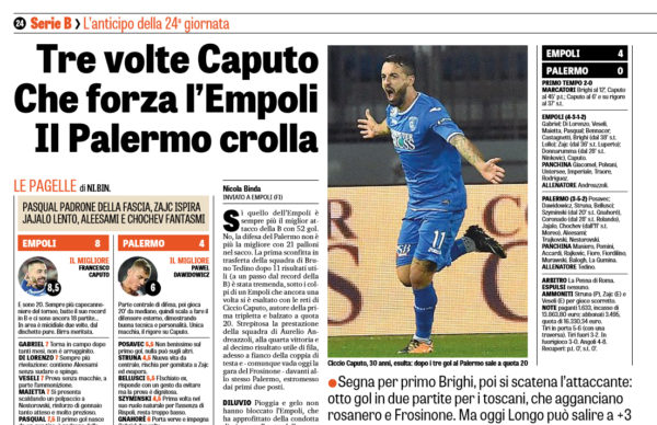 Tuttosport: “Le pagelle di Empoli-Palermo”