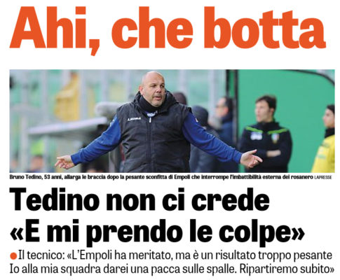Record di imbattibilità in trasferta sfumato per la squadra di Tedino, reduce dal 4-0 contro l'Empoli di ieri sera. Ecco...