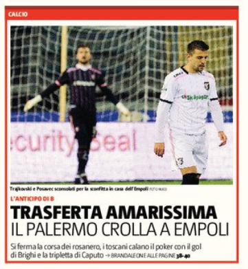 Nella prima pagina del "Giornale di Sicilia" di oggi, il quotidiano evidenza la brutta trasferta giocata ieri dal Palermo in...