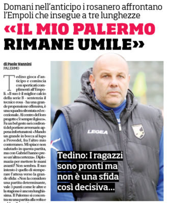 L'edizione odierna de "Il Corriere dello Sport" ha riportato le parole dichiarate ieri dal tecnico rosanero Bruno Tedino. Ecco quanto...