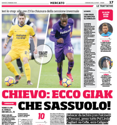 L'edizione odierna de "Il Corriere dello Sport" ha raccontato le ultime ore del mercato di gennaio. Ecco quanto si legge:...